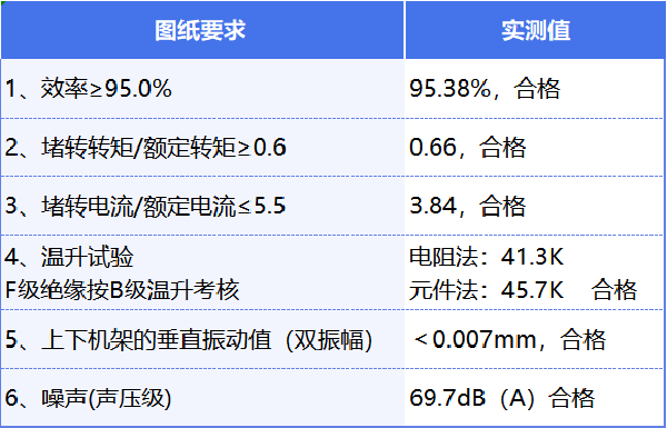 At the same time, the test data show that the temperature rise of the motor is very low, and the overload capacity is strong, reaching the level of excellent products.