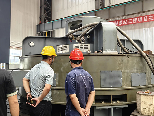 On August 21, 2023, Wuhan Bilshui Group Co., Ltd. organized a factory acceptance meeting for the main motor equipment (4 sets of TL2500-48/4500 10Kv vertical synchronous motors) of Zhulinhu Pumping Station, EPC general contract project of Dujiatai flood Storage and safety Construction Project (Wuhan section) in our company. The participants mainly included Wuhan Water Conservancy Bureau, the project authority, Sichuan Yuanfeng Construction Project Management Co., LTD., the supervision unit, Hubei Water Conservancy and Hydropower Planning Survey and Design Institute Co., LTD., the design unit, Hubei Haochuan Water Conservancy and Hydropower Engineering Co., LTD., the construction unit, and Wuhan Bishui Investment and Operation Co., LTD. The participants reviewed and listened to the factory acceptance data and related reports of the first motor of our company, and witnessed the factory test of the motor. After full discussion and review, the experts of the acceptance group gave a high degree of affirmation to the performance indicators and stability of the motor, and unanimously agreed to pass the factory acceptance.